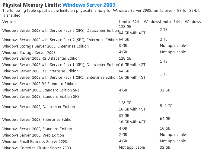 http://social.technet.microsoft.com/Forums/zh-CN/2219/thread/42788289-7f1c-401b-b89b-5fd0fac0ba5e/3、Memory Limits for Windows Releases