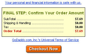 $7.49 .org Domain Sale”,点击进去,就可以注册低价org域名了:“SPECIAL OFFER! .ORG JUST $7.49* PER YEAR! ”。在开始的时候显示的是14.99,到最后结算的时候才是优惠价格7.49。同样的方法,可以注册7.49美元的net域名,和6.99美元的com域名了。